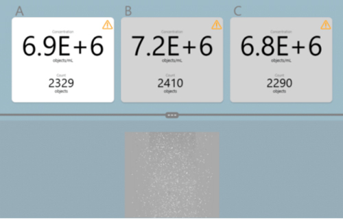 圖5, μCount3D立體計(jì)數(shù)儀的軟件視圖,顯示了實(shí)驗(yàn)中使用的大腸桿菌的三孔讀數(shù)。