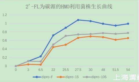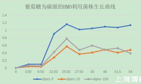 應(yīng)用Biosense全自動生長曲線分析儀監(jiān)測HMO利用菌株的生長過程,篩選的長雙歧桿菌嬰兒亞種dipro-F,dipro-15和dipro-105能夠高效利用HMO。