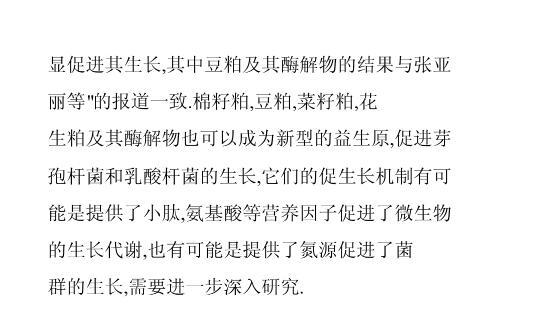 【摘要】:用平板法從健康魚類腸道中分離得到三種不同的微生物:大腸桿菌、芽孢桿菌、乳酸桿菌,再用液體培養(yǎng)法研究了植物蛋白及其酶解物在體外對這三種微生物生長的影響。結(jié)果表明,除菜籽粕原料外,棉籽粕、豆粕、花生粕原料及棉籽粕、豆粕、菜籽粕、花生粕的酶解物對芽孢桿菌、乳酸桿菌促生長作用明顯,差異均顯著(P0.05);對大腸桿菌除棉籽粕酶解物外,四種原料及其余三種酶解物的促生長作用均不明顯,差異不顯著(P0.05)。