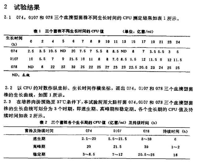 用改良肉湯連續(xù)繼代培養(yǎng)大腸桿菌074,0107,078和三個血清型菌株,在最終使用的肉湯預熱至37攝氏度條件下,測定各菌株不同培養(yǎng)時間的菌落形成單位。以菌數(shù)的對數(shù)作縱坐標,培養(yǎng)時間作橫坐標,繪制出各菌株的生長曲線。