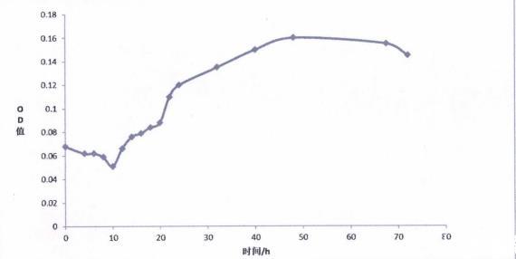 6)、菌種生長曲線檢測:將分離純化的菌種按照5%的菌液接種量接種到對應液體培養(yǎng)基中,每隔1h取樣5mL,利用普析T6紫外分光光度計在620nm測定菌種OD值。