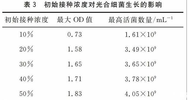 3.3初始接種濃度對光合細(xì)菌生長的影響