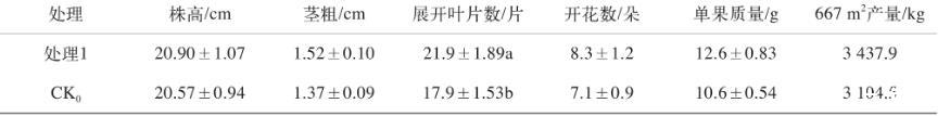 表1草莓生長(zhǎng)指標(biāo)及產(chǎn)量的比較