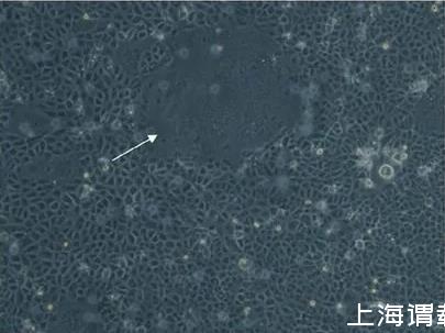 圖2細(xì)胞病變脫落呈拉網(wǎng)狀