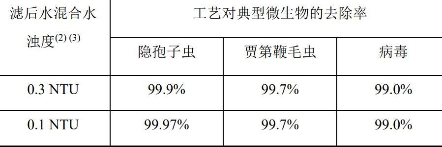 注2:濾后水混合水是指工藝中所有濾格的產(chǎn)水匯合后、進(jìn)入消毒工段前的混合水。