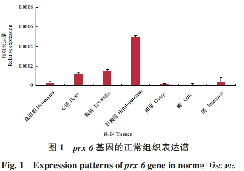 作為一種過(guò)氧化物還原酶,Prx 6其參與了無(wú)脊椎動(dòng)物的先天免疫過(guò)程,在抗氧化以及抗菌肽的調(diào)節(jié)中發(fā)揮著重要作用。近些年,prx 6在無(wú)脊椎動(dòng)物中的作用不斷被挖掘,現(xiàn)有的文獻(xiàn)報(bào)道了其參與了氧化還原系統(tǒng)的調(diào)控、免疫信號(hào)的傳導(dǎo)、細(xì)胞凋亡的調(diào)控等。甲殼類(lèi)動(dòng)物主要通過(guò)肝胰腺來(lái)執(zhí)行機(jī)體的免疫反應(yīng),同時(shí)也是病原菌侵襲的主要組織器官,因此肝胰腺組織在宿主機(jī)體免疫調(diào)節(jié)有可能起到重要作用。本研究發(fā)現(xiàn)prx 6在小龍蝦的各組織中均有分布,在肝胰腺中表達(dá)量最高。同時(shí),本研究發(fā)現(xiàn),S.aureus刺激后,prx 6基因在小龍蝦肝胰腺、血細(xì)胞等組織中均出現(xiàn)上調(diào)表達(dá)趨勢(shì)。肝胰腺作為小龍蝦主要的免疫器官,本研究實(shí)驗(yàn)結(jié)果顯示prx 6在肝胰腺中表達(dá)量最高,有可能prx 6在小龍蝦肝胰腺對(duì)抗病原侵染方面起到重要作用。