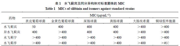 3.1水飛薊賓及同分異構(gòu)體對標準菌株的MIC