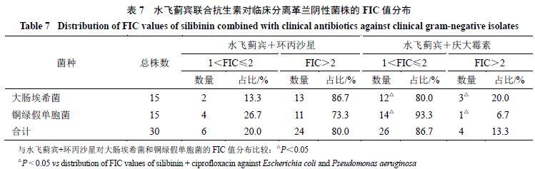 3.6水飛薊賓與臨床常用抗生素對臨床分離菌株的聯(lián)合抑菌效應