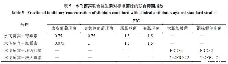 3.5水飛薊賓與臨床常用抗生素對標準菌株的聯(lián)合抑菌效應