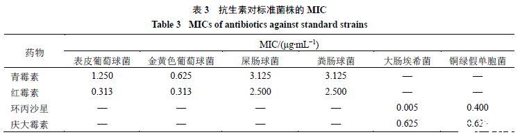 3.3抗生素對標準菌株和臨床分離菌株的MIC