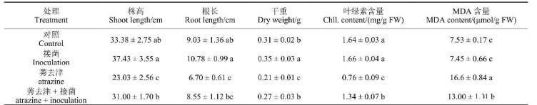表3莠去津脅迫下菌株P(guān)seudomonas sp.AT2對水稻生長的影響