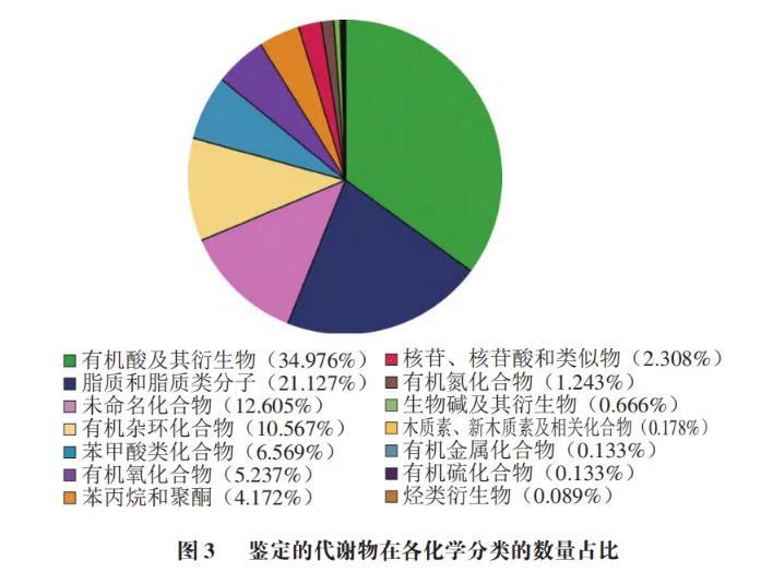 2.2代謝物鑒定數量及化學分類歸屬統(tǒng)計