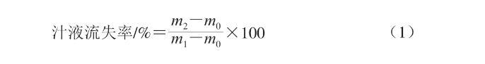 式中:m0為包裝袋質(zhì)量/g;m1為包裝袋、汁液和魚(yú)肉的總質(zhì)量/g;m2為包裝袋與汁液的總質(zhì)量/g。