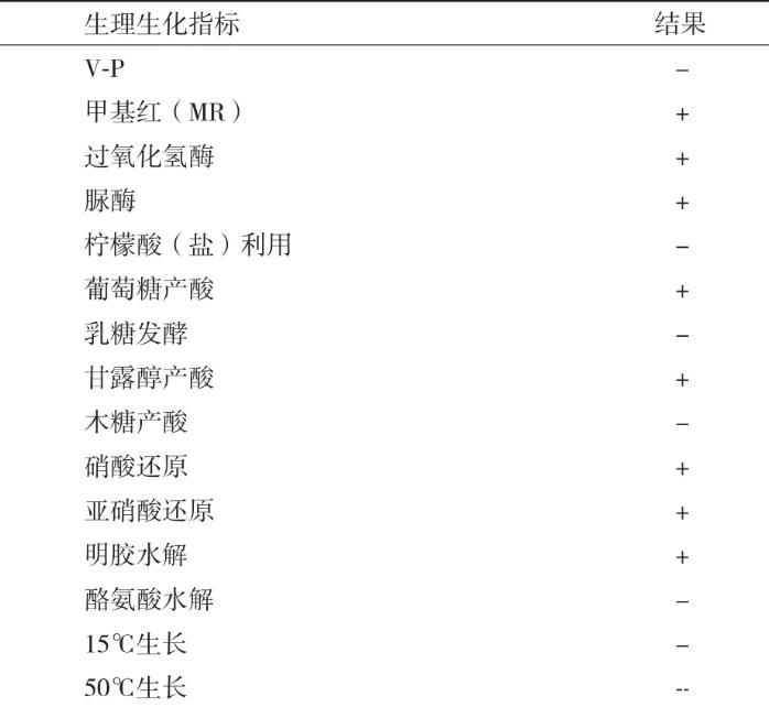 通過(guò)表2所得的16項(xiàng)生理生化試驗(yàn)結(jié)果,結(jié)合形態(tài)學(xué)特征,依據(jù)《伯杰氏細(xì)菌系統(tǒng)鑒定手冊(cè)》,判斷該菌株可能是側(cè)孢短芽孢桿菌(Brevibacillus laterosporus)。