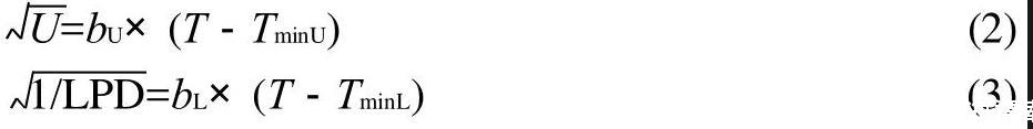 式中:T是培養(yǎng)溫度;TminU、TminL是最低生長(zhǎng)溫度,為一假設(shè)概念,指的是微生物沒有代謝活動(dòng)時(shí)的溫度,是通過外推回歸線與溫度軸相交而得到的溫度;b是系數(shù)。