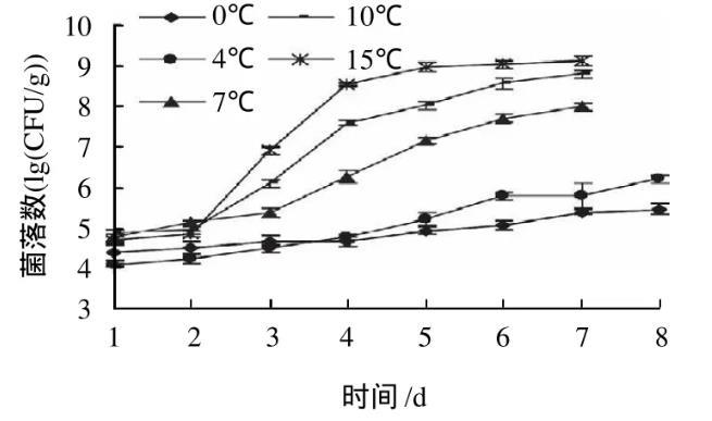 由圖1可以看出,0℃條件下熱殺索絲菌生長較緩慢,隨著溫度的升高,生長速度加快,在4℃時生長速度加快的還不是很明顯,從7℃開始生長速度急劇加快,生長曲線呈典型的S型??梢姕囟仁怯绊懳⑸锷L的一個重要因素。