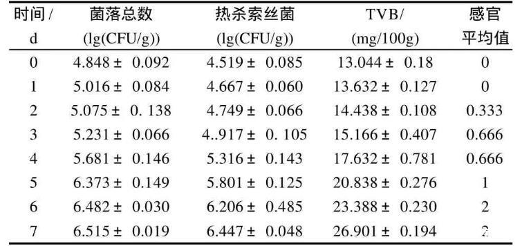 表1 3℃儲藏冷鮮肉儲藏過程中各指標(biāo)的變化