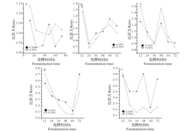 圖3糖代謝途徑關(guān)鍵酶相對比活的時(shí)序變化
