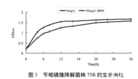 圖3芐嘧磺隆降解菌株75B的生長曲線