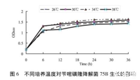 圖6不同培養(yǎng)溫度對芐嘧磺隆降解菌75B生長的影響