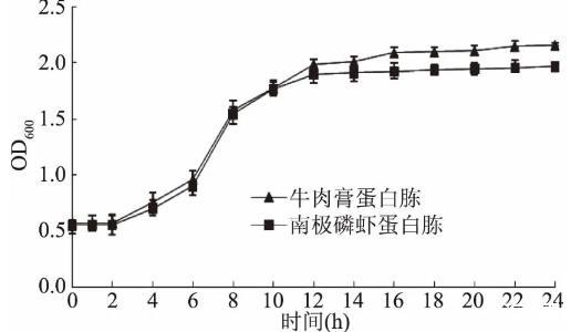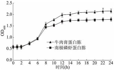 牛肉膏蛋白胨、南極磷蝦蛋白胨微生物培養(yǎng)及生長變化