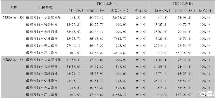 表2磷霉素鈉體外聯(lián)合其他藥物對金黃色葡萄球菌的藥敏結果[株數(shù)(%)]