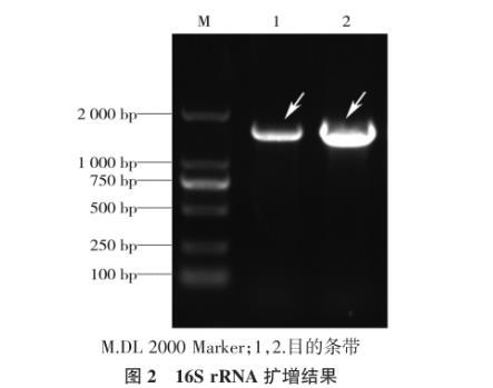 圖2 16Sr RNA擴增結(jié)果