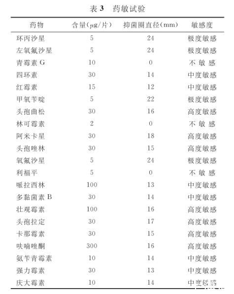 2.5藥敏試驗(yàn)結(jié)果見(jiàn)表3。
