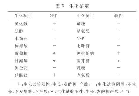 2.4生化鑒定結(jié)果見(jiàn)表2。