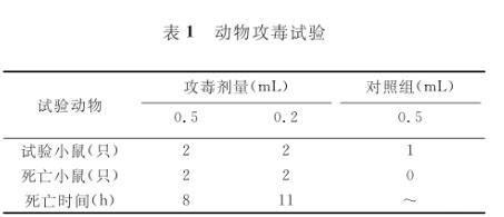 將細(xì)菌擴(kuò)大培養(yǎng)物對(duì)小鼠進(jìn)行腹腔注射后,小鼠全部在12h之內(nèi)死亡,表中死亡時(shí)間為2只小鼠平均死亡時(shí)間,具體結(jié)果見(jiàn)表1。