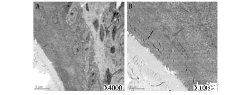 圖2撒壩豬耳緣組織透射電鏡分析(黃色箭頭所示皮膚類細胞,紅色箭頭所示為成纖維細胞)