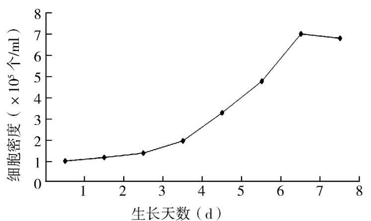 每天計數(shù)結(jié)果取平均值,繪制撒壩豬成纖維細胞生長曲線呈“S”型(圖3),細胞有約3d的緩慢生長期。此后進入指數(shù)生長期,第7天細胞數(shù)達最大。然后細胞生長進入平頂期,此時由于細胞密度增大,細胞生長受接觸抑制的影響,細胞開始衰老凋亡。