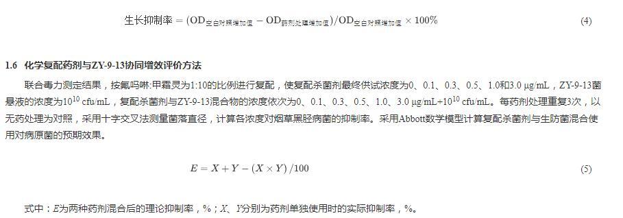 1.6化學(xué)復(fù)配藥劑與ZY-9-13協(xié)同增效評(píng)價(jià)方法