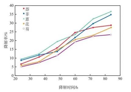 2.3菌株N-3對萘、菲、蒽、芘、芴的降解
