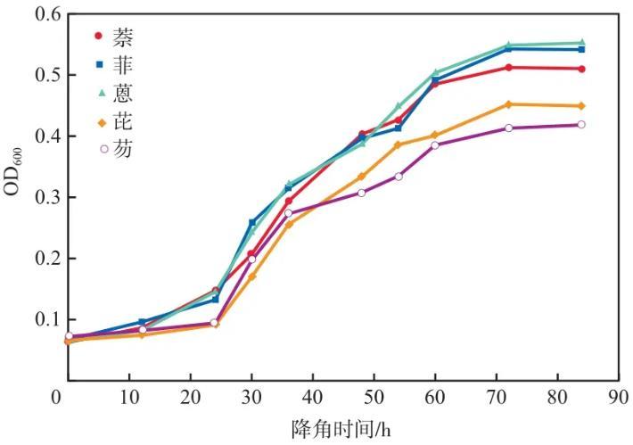 圖4菌株N-3在不同PAHs體系中的生長曲線
