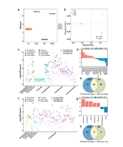 圖3:葉際微生物群落的結(jié)構(gòu)與多樣性