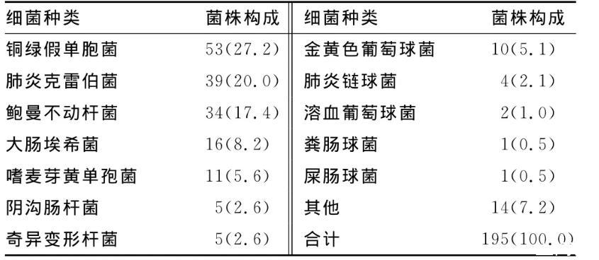 下呼吸道感染患者肺泡灌洗液195株細(xì)菌分離及藥敏結(jié)果