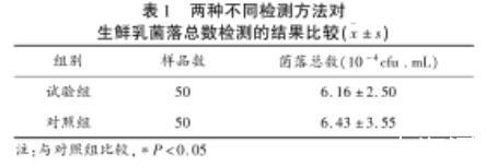 表1兩種不同檢測方法對生鮮乳菌落總數(shù)檢測的結(jié)果比較