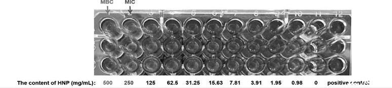 圖1呼寧散(HNP)對(duì)雞肺源大腸桿菌的MIC和MBC