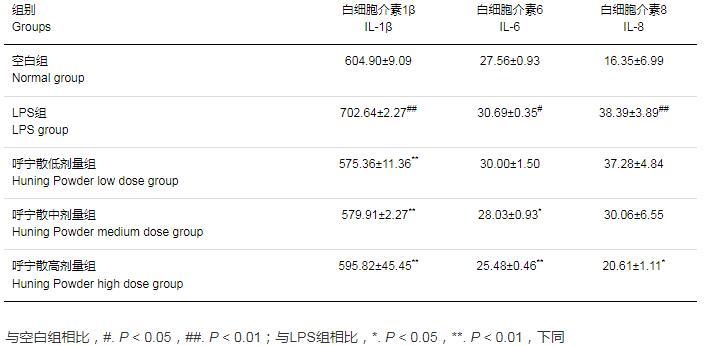 2.7呼寧散對(duì)LPS致DF-1細(xì)胞炎癥因子含量的影響