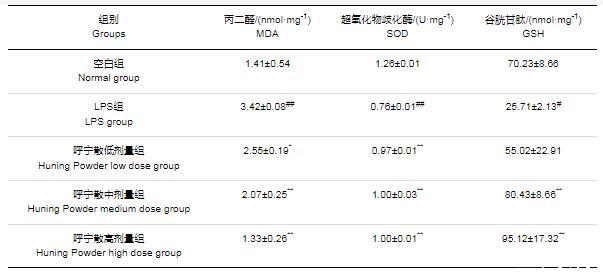 2.9呼寧散對(duì)LPS致DF-1細(xì)胞氧化應(yīng)激指標(biāo)及抗氧化物的影響