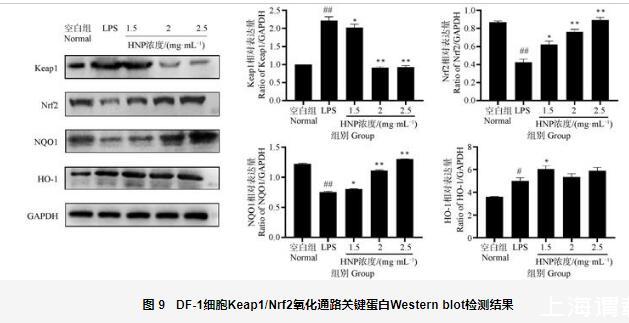 圖9 DF-1細(xì)胞Keap1/Nrf2氧化通路關(guān)鍵蛋白Western blot檢測(cè)結(jié)果