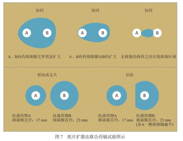 圖7紙片擴(kuò)散法聯(lián)合藥敏試驗圖示
