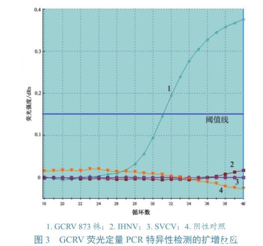 圖3 GCRV熒光定量PCR特異性檢測的擴(kuò)增反應(yīng)