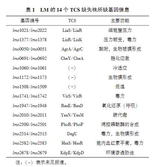 LM參考菌株10403S(血清型為1/2a型)、大腸桿菌DH5α、攜帶gfp片段的質(zhì)粒pFL251、載體質(zhì)粒pERL3均由本實驗室保存;LM的14個TCS缺失株由本實驗室前期構(gòu)建并保存,其缺失的TCS具體信息及主要功能見表1。