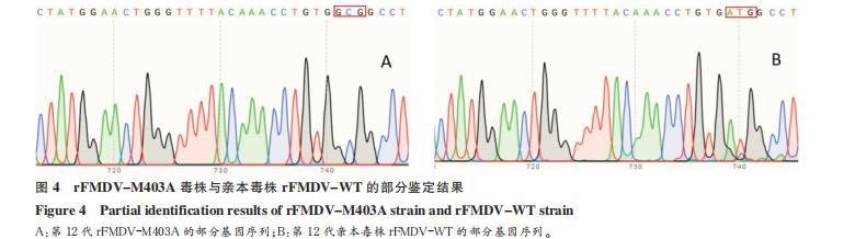 圖 4 rFMDV-M403A 毒株與親本毒株 rFMDV-WT 的部分鑒定結(jié)果