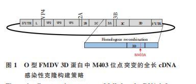 圖 1 O 型 FMDV 3D 蛋白中 M403 位點(diǎn)突變的全長 cDNA感染性克隆構(gòu)建策略