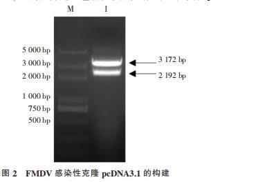 圖 2 FMDV 感染性克隆 pcDNA3.1 的構(gòu)建