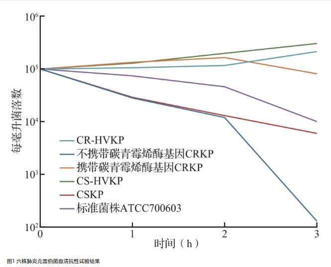 圖1六株肺炎克雷伯菌血清抗性試驗(yàn)結(jié)果