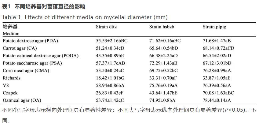 dttz菌株在麥芽糖(38.22mm)條件下獲得最大菌落直徑